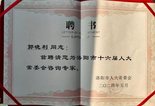喜报|郭晓利成为洛阳市第十六届人大常委会咨询专家